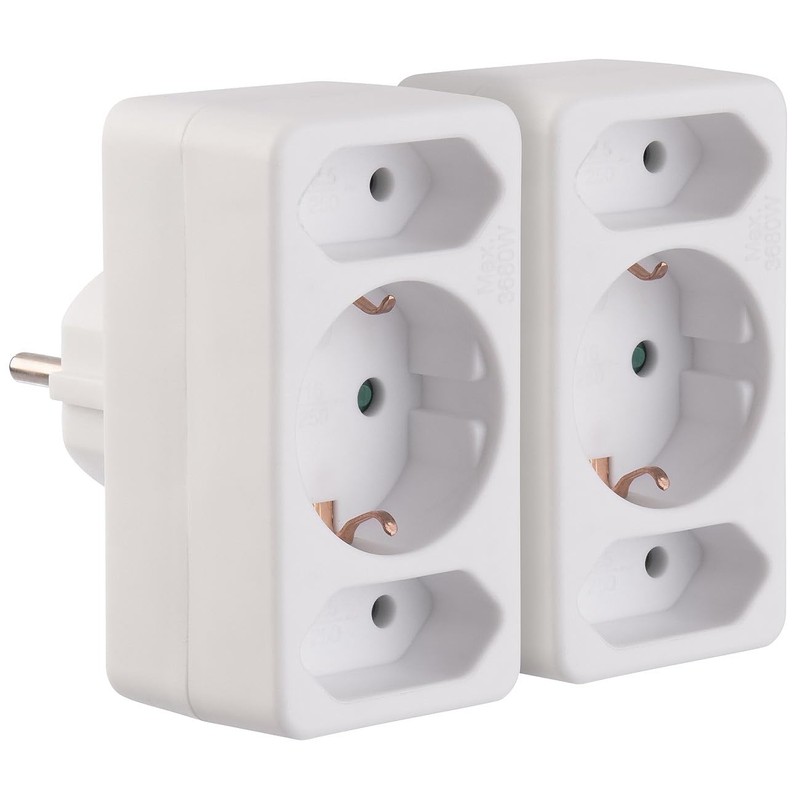 No more annoying repluging: Power up to 3 devices simultaneously from just one socket. The multiple plug provides connection for two earthing contact plugs and one Euro plug.
