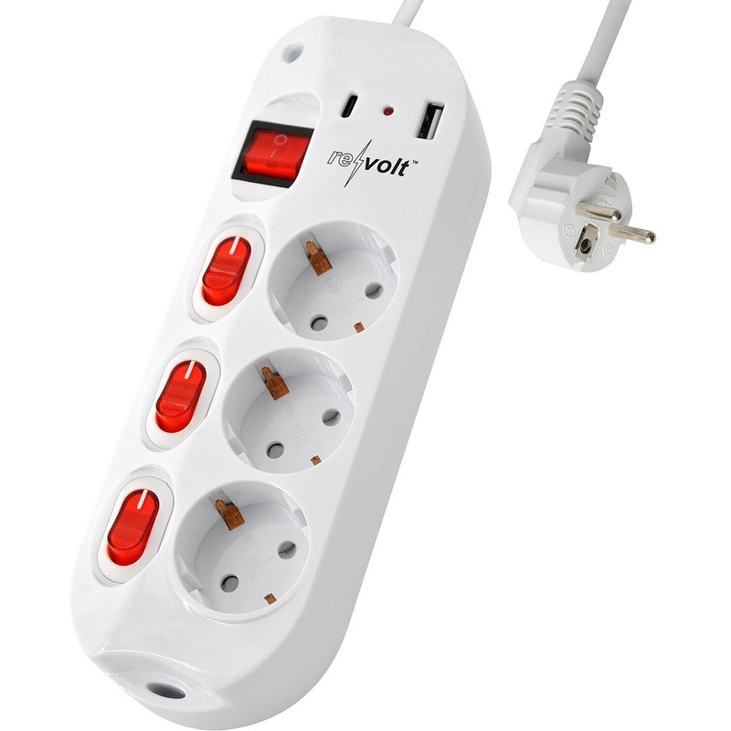 - Ideal for the desk: each socket can be switched individually With 2 USB charging ports: 1 x USB-C 20 W PD, 1 x USB-A with 15 W Maximum load: 3,680 W 3 switches with control lights With child lock