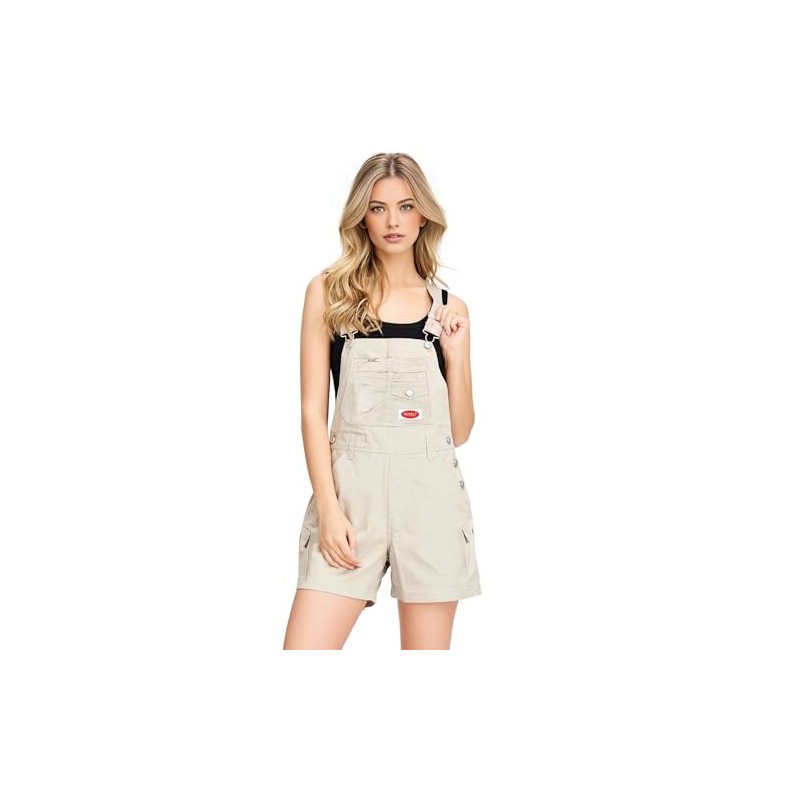 Revolt Women's Juniors Classic Twill Short Overalls (Fly Khaki, Large)