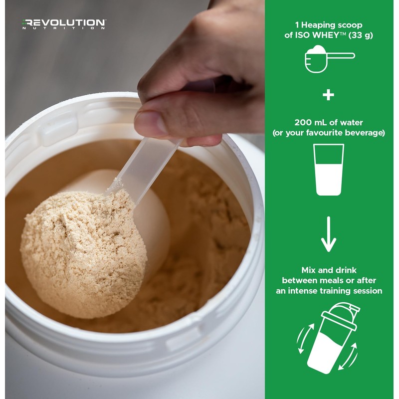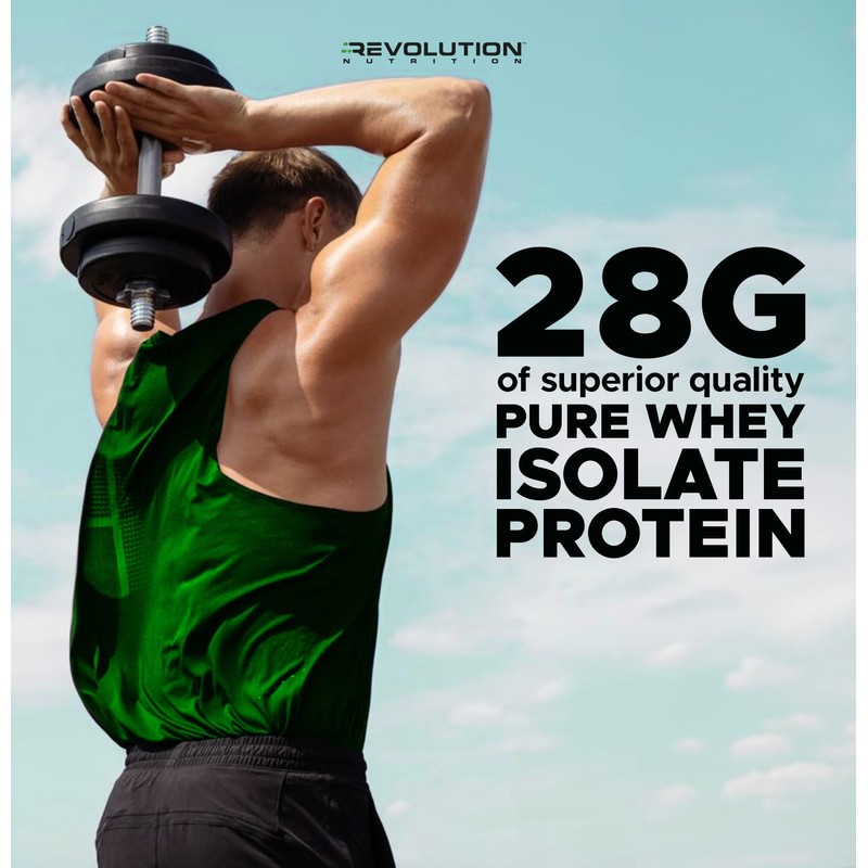 - Experience the excellence of Revolution Nutrition Iso Whey, enriched with a high-quality fusion of protein isolate rich in vital amino acids and fortified with digestive enzymes. This unique blend enhances the impact of each serving, maximizing the nutritional benefits.