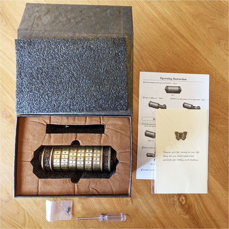 - Jewelry box with a password made from the movie "Kryptex" "Da Vinci Code"