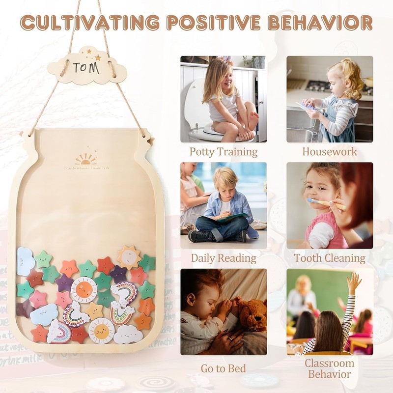 - 【Motlvational Tool for Kids】Our Wooden reward jars offer various fun ways to support your child in establishing daily routines, acquiring new skills, and reinforcing positive behaviors. With this Wooden reward jar, you can make various activities more enjoyable, such as chores, potty training, daily reading, bedtime routines, good behavior, teeth cleaning, homework, and more!
