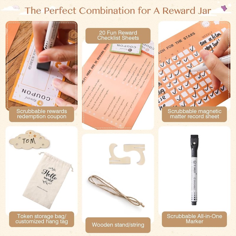 - 【Excellent Gift】This behavior management reward set is a thoughtful gift for parents, can also help teachers to create a positive classroom environment, Ideal For Back To School Day. Say goodbye to annoy, say goodbye to procrastination, promoting kids' growth. From toddlers to preteens, Reward Jar serves as the ultimate all-in-one reward system that It'll take care of all your needs.