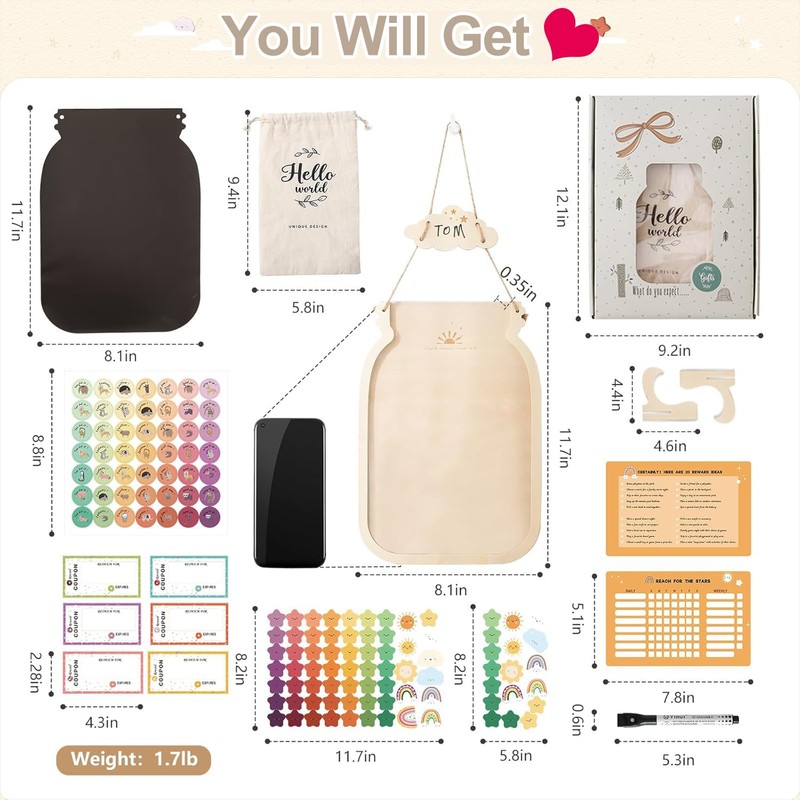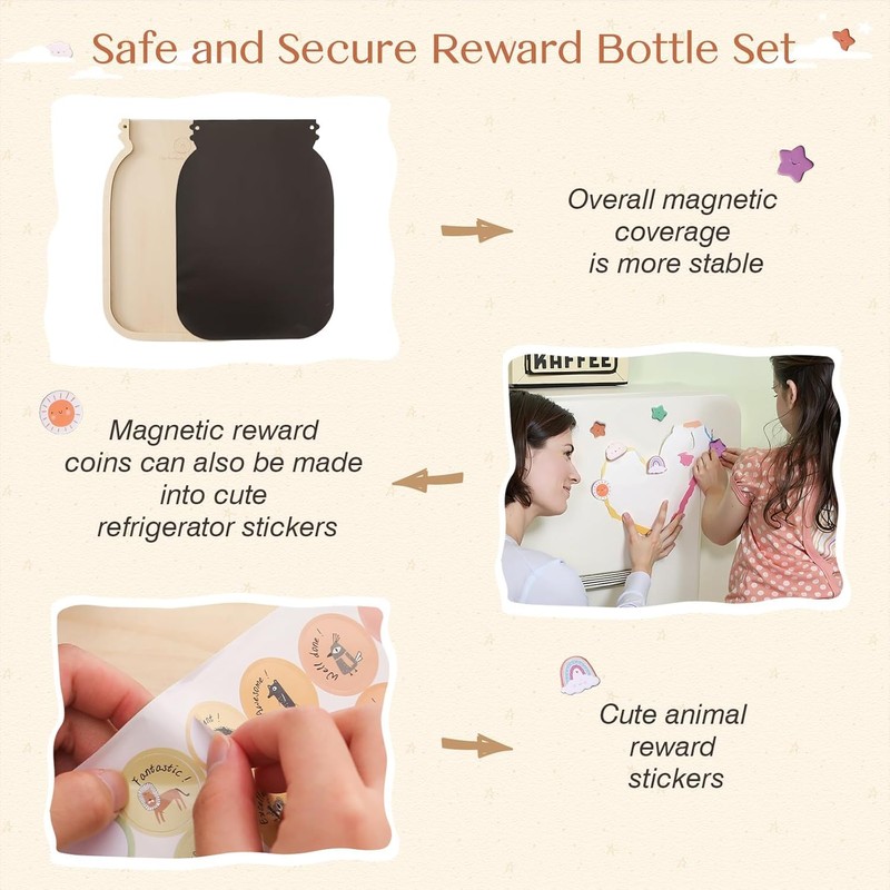 - 【Magnetic Reward Jar】We increased the size of the jars! Each bonus accessory has been upgraded to be magnetic, Star Reward Jar can be ,used with any Magnetic receptive surface including whiteboards and fridges. Comes with creative forms, schedules, redemption coupons and storage bags!