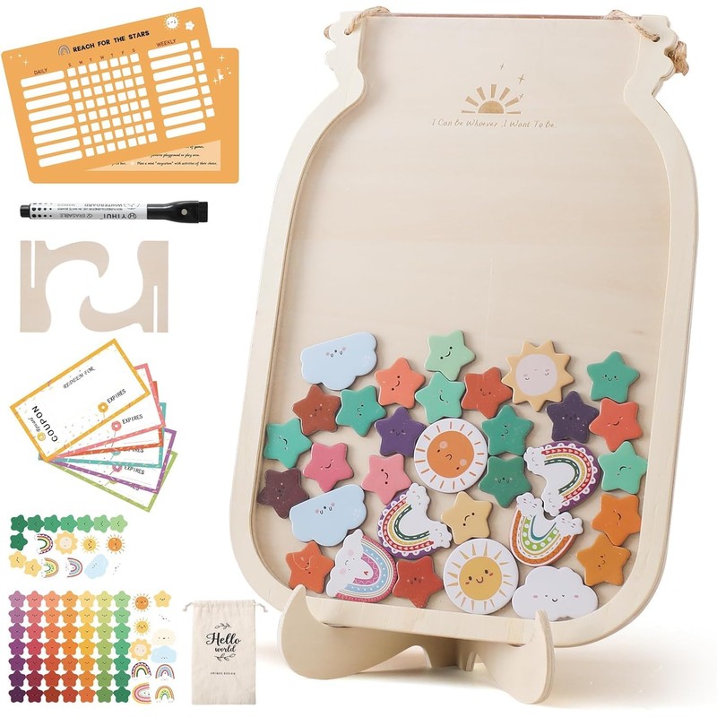 - 【Establish Children's Goals&Sense of Responsibility】The wooden Reward Jar allows you to visualize the progress of your child's tasks, and as the stars are slowly stacked, your child will feel a sense of accomplishment upon task completion. This is a great way to instill confidence and a sense of responsibility in your child and allows them to enjoy planning for future goals. Believe me, no child will resist such temptation.
