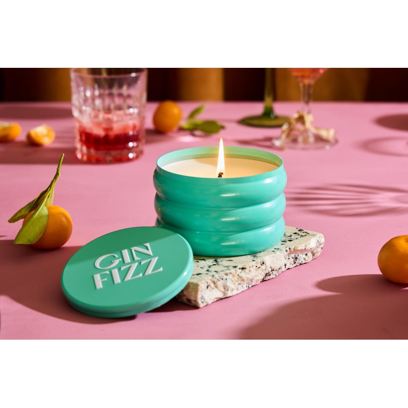 Fresh, frothy, and delicately complex. Embrace the spirit of a classic with a modern twist in our Gin Fizz candle. Enclosed in a vivid, turquoise colored tin, this fragrance bursts with the freshness of cool cucumber, the subtle sweet floral notes of elderflower, and the distinct, crisp gin botanicals.