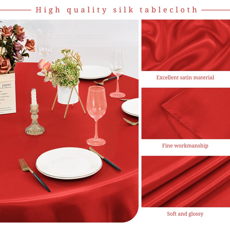 - 🎉【Multipurpose Table Covers】: Satin tablecover is an efficient and economical choice for a tablecloth; These tablecloths are suitable for any indoor and outdoor dining occasion either for decorative or functional uses. It can easily be used at weddings, party, dinners, brunches, buffets, trade shows, showrooms, events or even your home!
