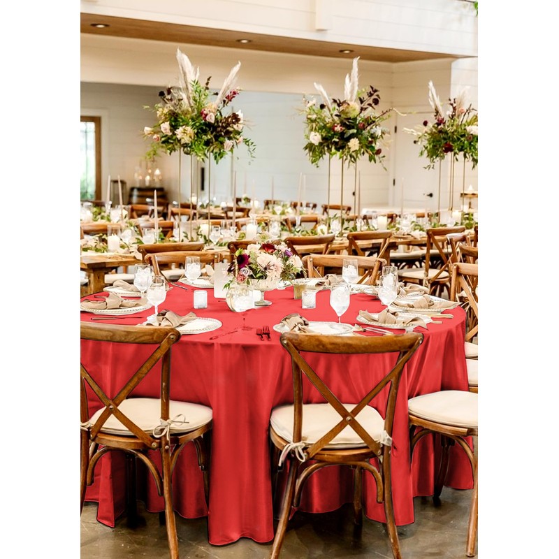- 🎉【Perfect size】: This Red table cloth diameter is 120 inch, cut entirely from a single piece of fabric. Red tablecover is more luxurious, classic and gracious, ideal for both formal & casual settings and makes a great present for all occasions. Upgrade your special moment and daily life with an exquisite taste.