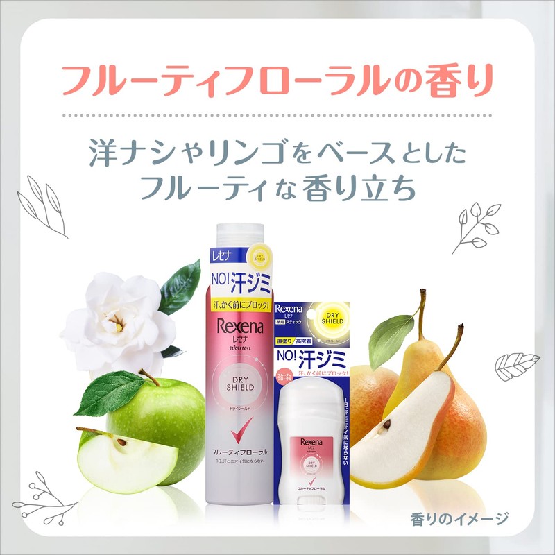 Rexena Dry Shield Powder Stick, Fruity Floral, Main Unit Set, 0.7 oz (20 g) x 2, Antiperspirant