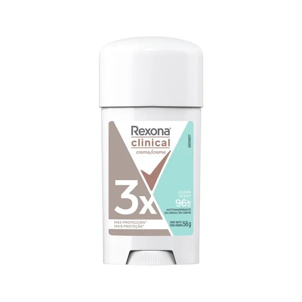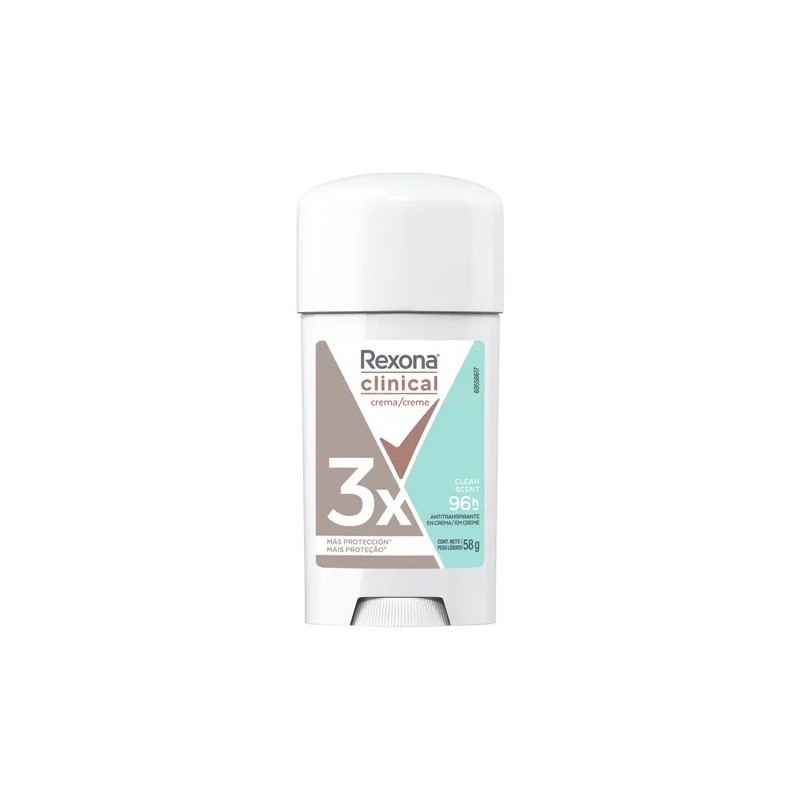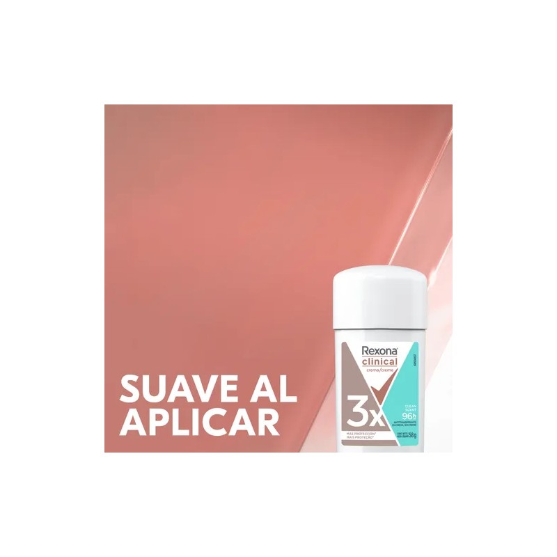 Rexona Women Antitranspirante En Crema Clinical Clean Scent Desodorante Con 3 Veces Más Protección Contra El Sudor* Y El Mal Olor Hasta Por 96 Horas 58 g