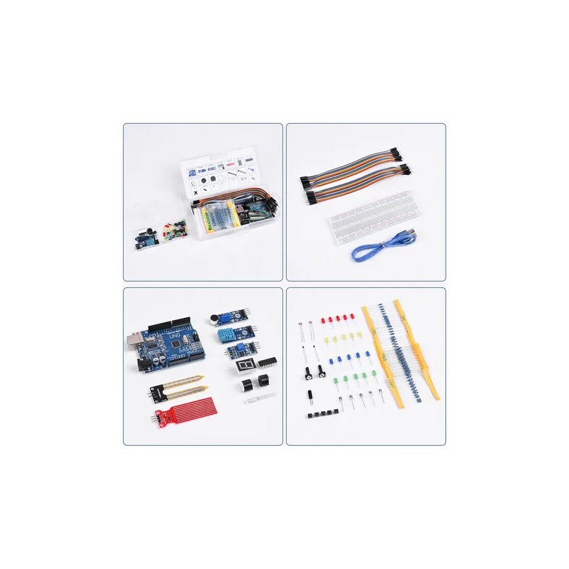1. REXQualis Baisc Starter Kit es el más barato y más básico kit de componentes electrónicos para principiantes Arduino, es adecuado para todo el mundo para aprender la electrónica y la programación. proporcionamos un tutorial detallado, la introducción de la configuración básica compatible con Arduino IDE, los principios de funcionamiento de los sensores y el programa simple para permitir que la placa de microcontrolador para controlar los sensores.