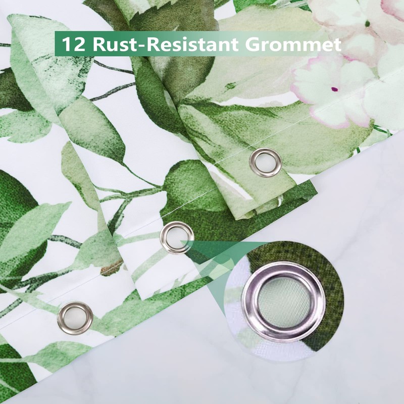 REZAYMRS Flower Shower Curtains with 12 Hooks, Polyester Waterproof Shower Curtain for Bathroom, Weighted Hem, Bathtubs, Hotel Curtain, Machine Washable, Quick Drying (Green)