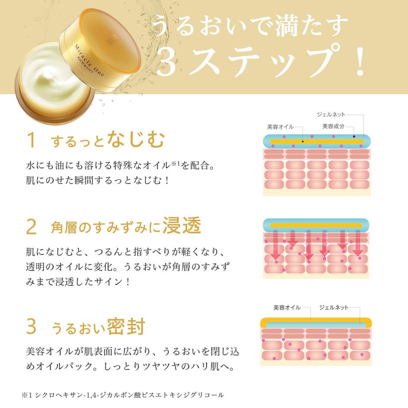 ・化粧水・乳液・美容液・クリーム・オイル・パックを備えたオールインワンジェル。