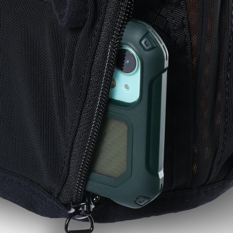 - SECURE REAR POCKET, PLUS KEY CLIP: In the rear outer pocket is a zipper secure storage area that expands as the pack is loaded. Inside of it is a key clip as well. This pocket is ideal for phone, wallet, keys, back up nutrition, headlamps, etc.