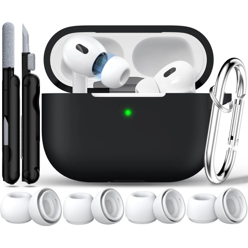 - 【Full protection and wireless charging support】Made of durable silicone, the case protects your Air pod from bumps and feels silky smooth. The bottom cover of the case is designed with a dust plug so that no more microscopic dust can seep into the Airpods Pro 2 and Airpods Pro charging ports.