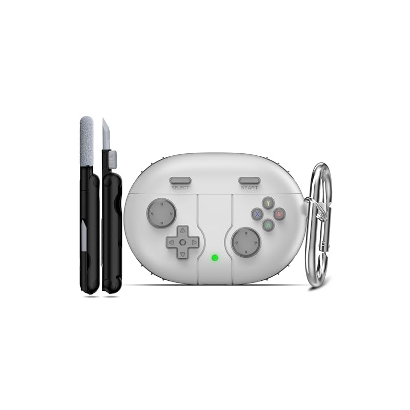 RFUNGUANGO Beats Studio Buds+ (2023) / Studio Buds (2021) Silicone Protective Case With Gaming Console Theme, Cleaning Tool, Key Fob - Light Grey