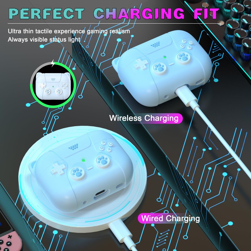 RFUNGUANGO for AirPods Pro 2nd /1st Generation Case Cover with Keychain,Game Player Design for Kid Men and Women, Soft Silicone Case for AirPods Pro Gen 2/1(2023/2022/2019) Charging Case- Cat Ear Blue