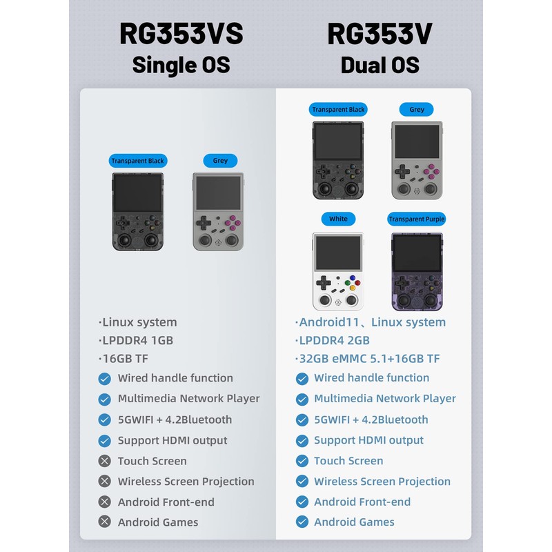 - 【Upgrade RK3566 Chip】RG353VS game console use the RK3566 Quad-Core 64 bit Cortex-A55, Main frequency up to 1.8GHz , which can solve the problem of frame dropping in the game, run the game perfectly, and make your game screen smoother.