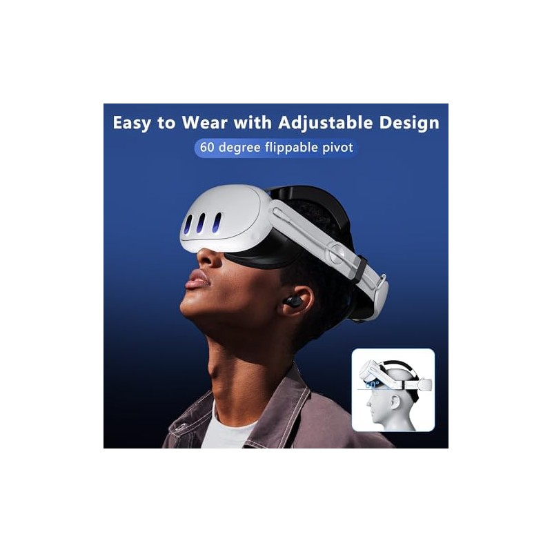 • Foldable and Adjustable: Our battery pack for meta quest 3 is designed with 60° adjustable hinge, allows you to flip the VR headset freely, making it easy to put on and take off. The head strap for Quest 3 only weighs 12.7oz which is easy to carry, allows you enjoy a better gaming experience.