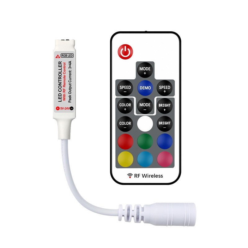 - Práctico kit de controlador LED: controlador mini RGB + mando a distancia inalámbrico RF. Consejos; debido a que el orden de línea de cada barra de luz RGB de fábrica no es uniforme, nuestra secuencia de línea del controlador es RGB.