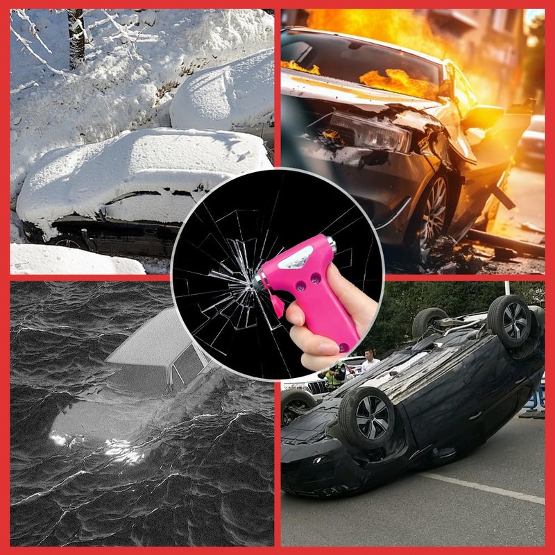 - [Easy to use] : The car window breaking tool has an ergonomic design, is easy to hold, provides a reliable grip, does not easily slide and fall off, and does not need to spend too much effort when using, can quickly break the window glass, everyone can easily use it. The emergency hammer is brightly colored and designed with a reflective strip, so you can quickly find out when you need it, even in the dark, and save escape time.