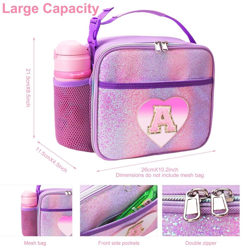 - STYLISH DESIGN INITIAL INSULATED LUNCH BAG:Lunch box for girls features a prominent initial [A-Z], presenting a trendy and simple design. Premium materials are carefully selected, which are not only soft to the touch but also highly durable.Girls lunch box showcases an exquisite pattern with vivid colors, full of childishness, instantly catching kids' eyes and making them stand out whether at school or on a picnic