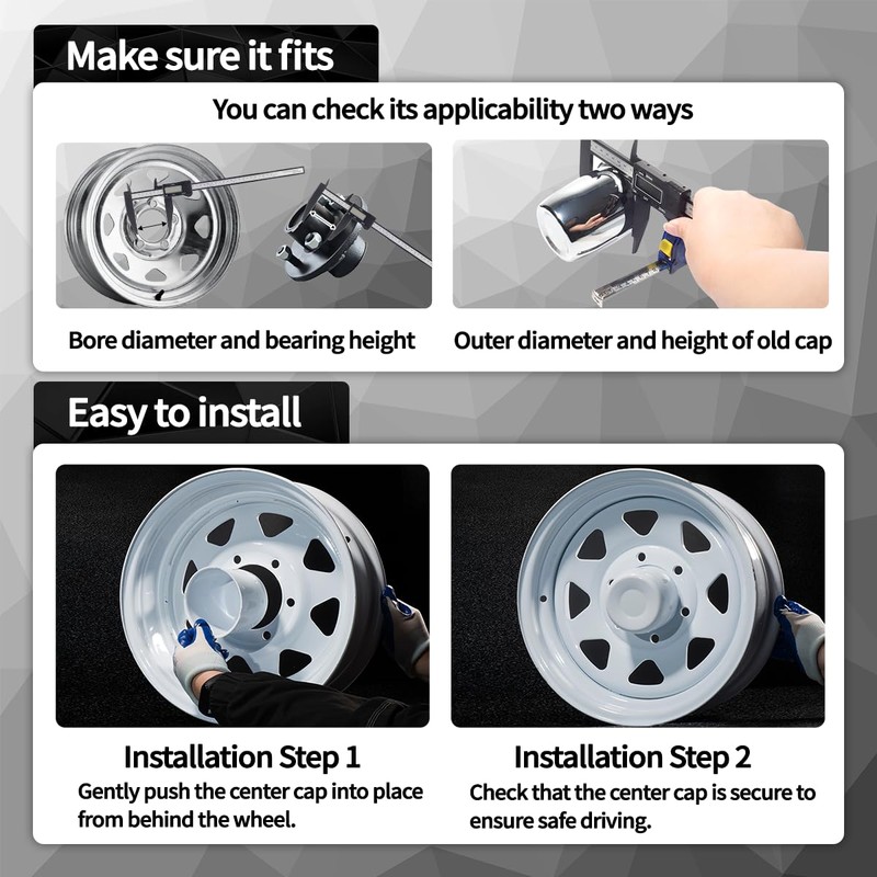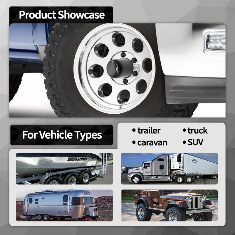 • Premium quality: Trailer wheel center caps are made of stainless steel with a matt black finish, wheel nuts are made of carbon steel with a matte black finish. Scratch resistant, durable and smooth to the touch. The centre hub cap creates a special focal point on the wheel and the elegant design enhances the style and appearance of your car.
