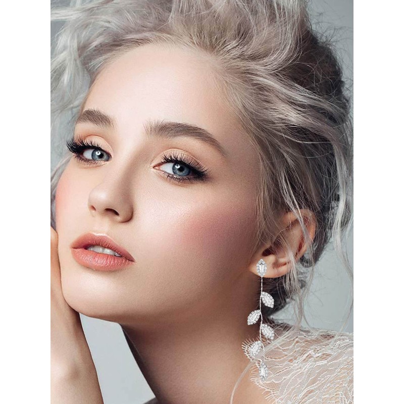 - RHINESTONE LEAF EARRINGS:The earrings with rhinestone sparkling under the light.This leaf tassel style zircon earrings are the latest fashion trend.