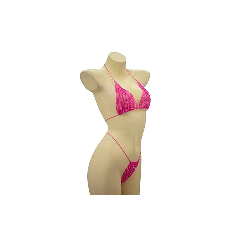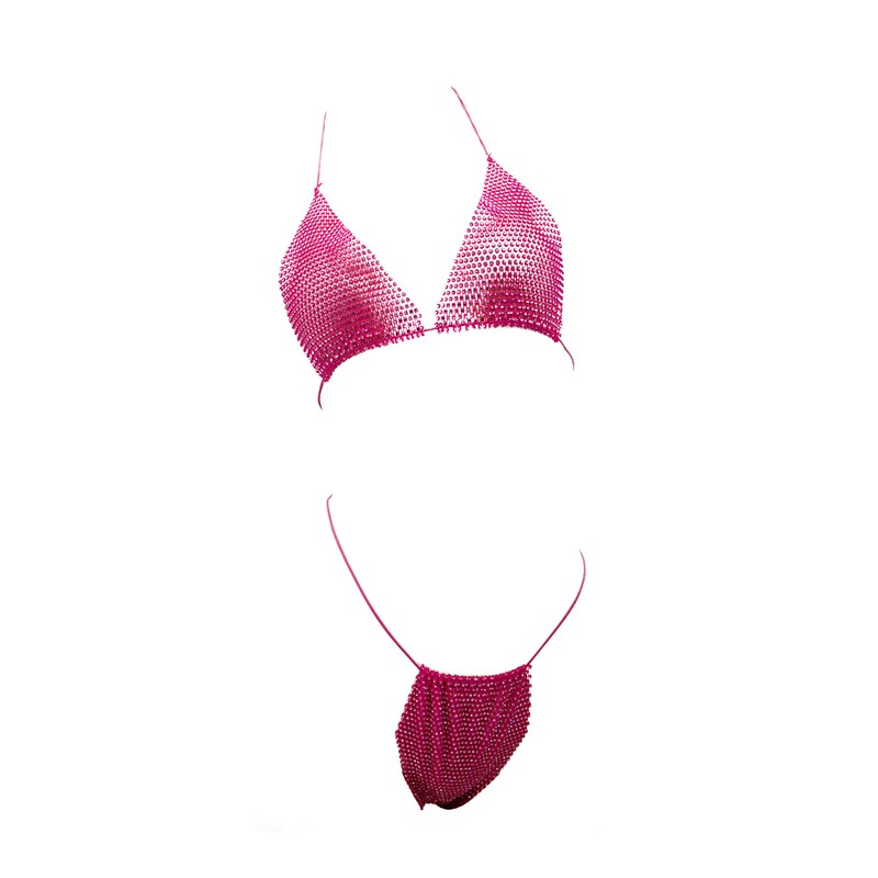 Rhinestone Mesh Bikini Set (Fuchsia)