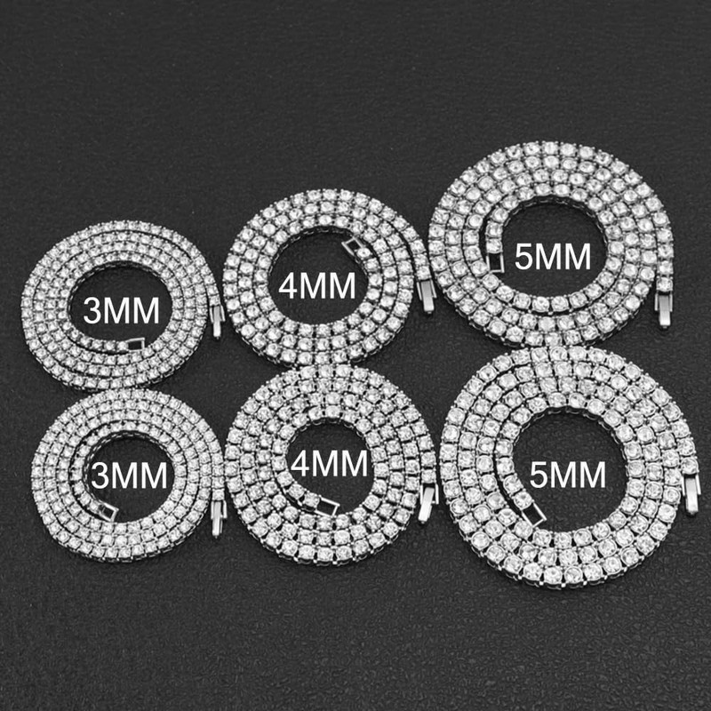 - Size and Apecifications: Width 3mm/4mm/5mm, length 16"/18"/20"/22"/24"/30", 1 row diamond tennis chain necklace. You can choose the right style according to your style and neck circumference. Diamond tennis necklace design is a representative of hip-hop culture and street style, it can show personality and unique style.