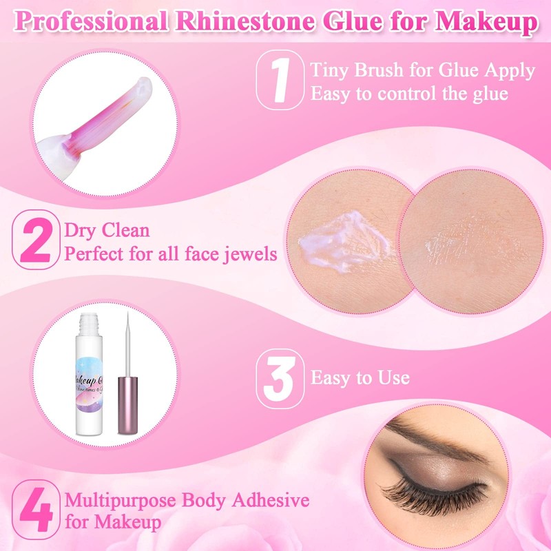 - 【Face Glue for Makeup Gems】 Shynek face rhinestone makeup glue is a professional makeup adhesive for long lasting holding face gems and eye jewels in your skin to provide the most sparkle to your face and eye makeup. Perfect for highlighting rhinestones makeup, body painting art, and hair decoration