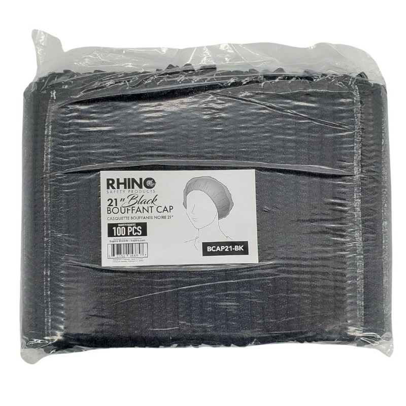 RHINO SAFETY PRODUCTS Bouffant Caps (1000 PCS, 21 Inch Black), PP Bouffant Hairnets with Elastic Stretch Band for Head Cover, Disposable Dust Cap for Food Service, Beauty, Kitchen & Workspace