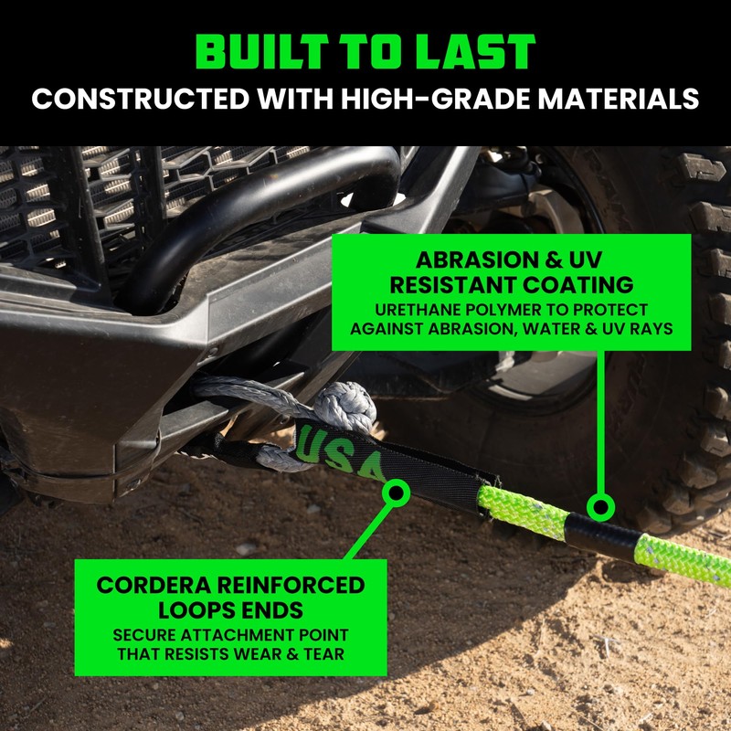 - STRONG & DURABLE: Made of heavy duty synthetic fiber for extended durability and able to stretch and store 4x more energy than a tow strap, for the safest and smoothest recovery