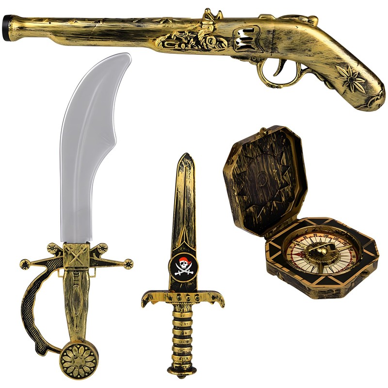 An absolute must for buccaneer bashes. This pirate set includes the tools of the trade for swashbuckling Raiders. Each set in PVC bag with printed header. For ages 5 and up.