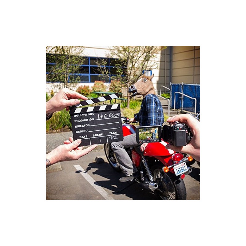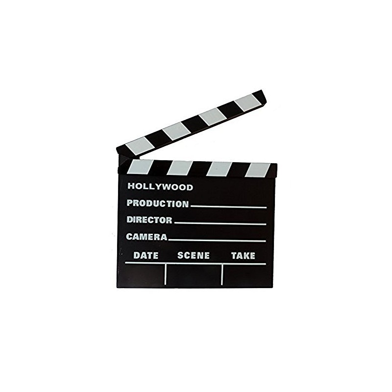 Add that Hollywood touch to your home and to your home movies. This 7" x 8" (17.8 cm x 20.3 cm) black and white wooden board has spaces to fill in the Production, Director, Camera, Date, Scene and Take. Quiet on the set. Action.