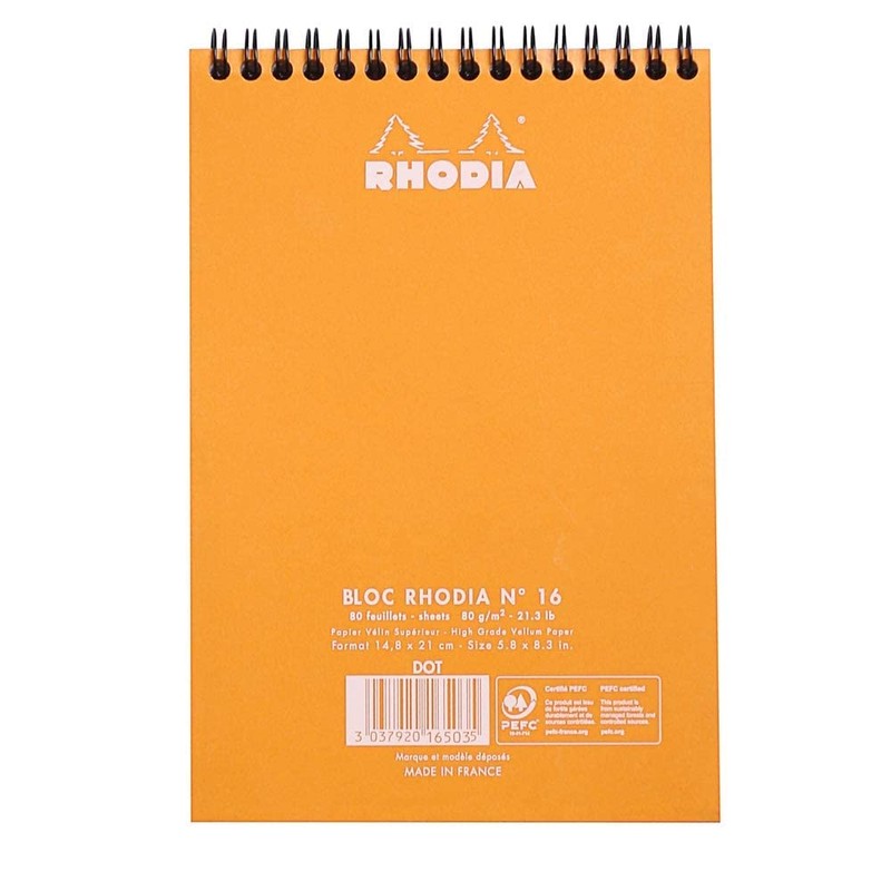 Rhodia #16 Wirebound Notepad 5.8" x 8.3" Dot Pad, Orange Cover