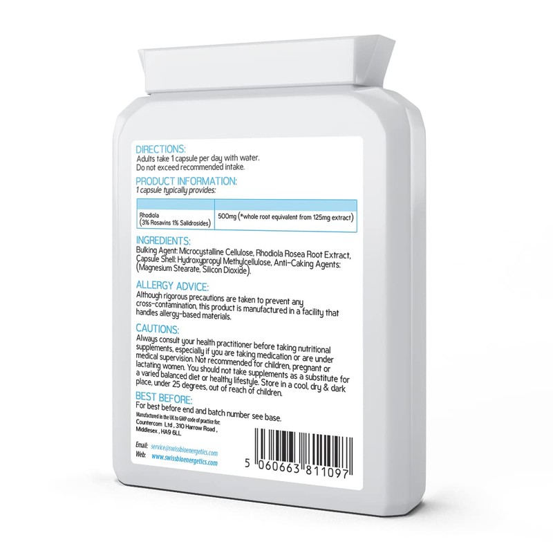 - ✔ HIGHEST POTENCY – Swiss BioEnergetics Rhodiola extract is standardised to at least 3% Rosavins & 1% Salidrosides