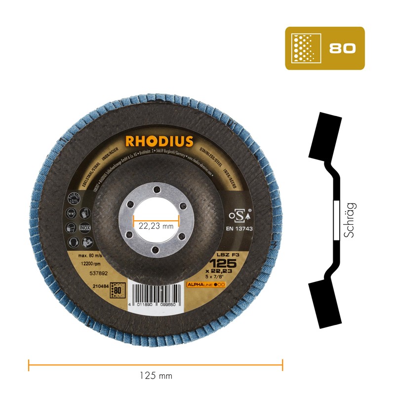 - Technical data: suitable for: stainless steel - grain: 80 - product type: segmented disc - 125 mm - bore: 22