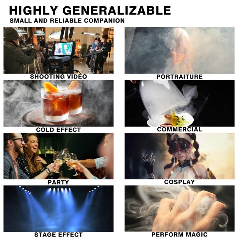 - Excellent performance and high smoke production: Whether you are shooting indoors or outdoors, cosplay or special effects production, our smoke machines can meet your smoke production needs, ensuring your creative work is more eye-catching and presents stunning visuals Effect.