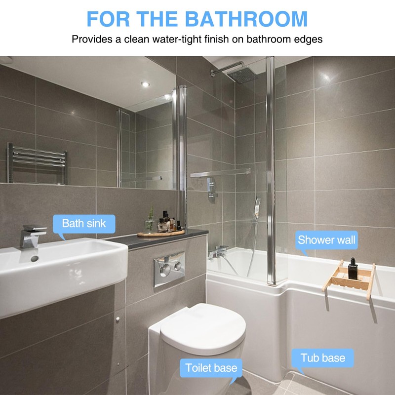 - Wide Application: The sealant caulk tape provides a professional look to the bathroom area and kitchen, keeping your house clean for a long time. Peel and stick caulk strip is ideal for floors, tiles, toilets, tubs, bathrooms, kitchen countertops, sinks, corners, as bathtub caulking tape, sealing strip tape for bathroom. Whether it is tile surface, wood surface, glass surface, metal surface, plastic surface, our tape can be used.