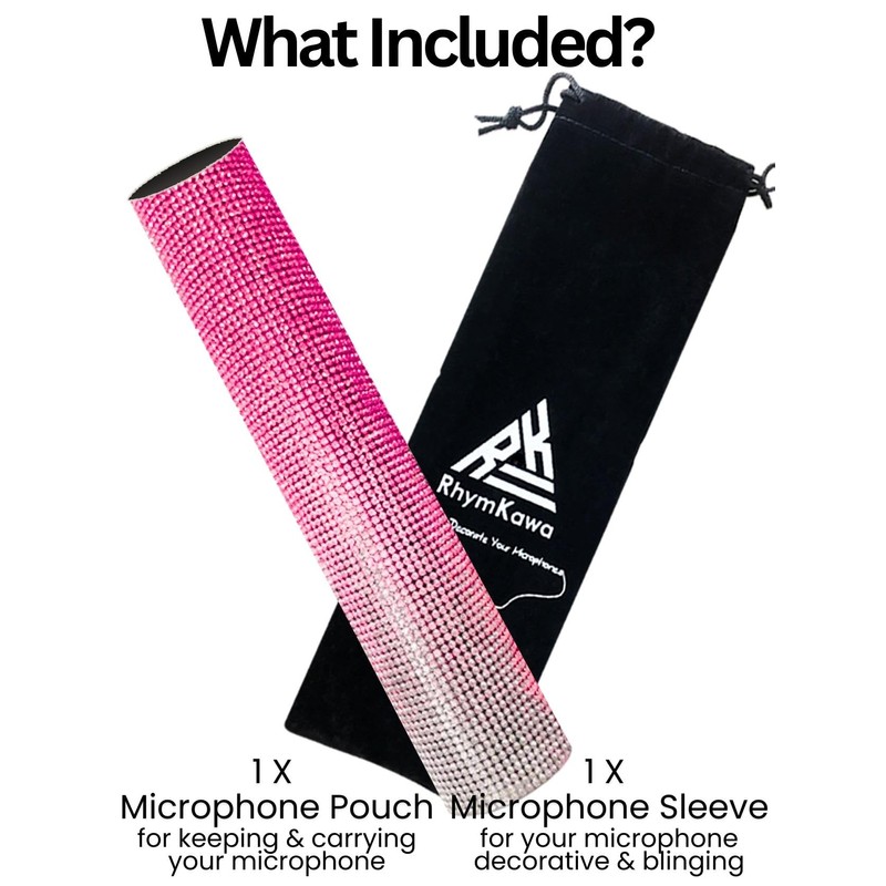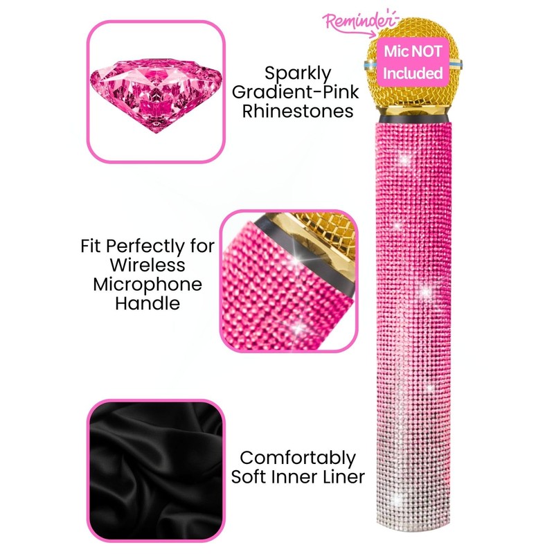 RhymKawa Wireless Microphone Sleeve for Shuer SM58, Beta 58A Gradient Rhinestones Mic Covers Replacement (Pinkly)