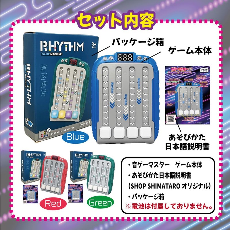 Reiwa Sound Game is finally released. Everyone's favorite rhythm game. Recommended Age: 6 years and up. Made in China. Planning, inspection, and dispatched all within Japan. Caution: Please be careful not to put small children into mouth or injury as they handle the screwdriver or small screws when replacing batteries. You can play silently but the opening background will ring until you get silent with the volume control button. Please be careful when using on transportation or in areas where you need to be quiet. Please do not get it wet as it is not waterproof. Do not throw or disassemble the main unit as it may damage it. Batteries are not included. Please prepare 3 AAA batteries. ]