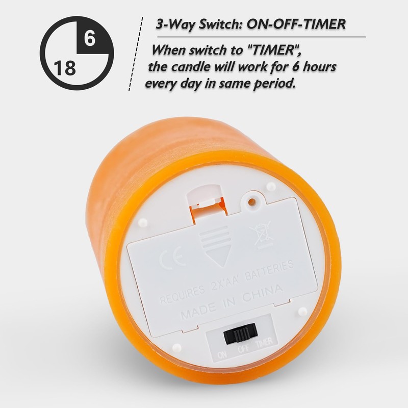 What's more, these candles come with a built-in timer function. When set to "TIMER," the light will automatically turn on for 6 hours each day at the same time and then turn off, saving you the trouble of manually switching them on and off. The 3-way switches offer the flexibility of ON, OFF, and TIMER modes, allowing you to customize your lighting needs.