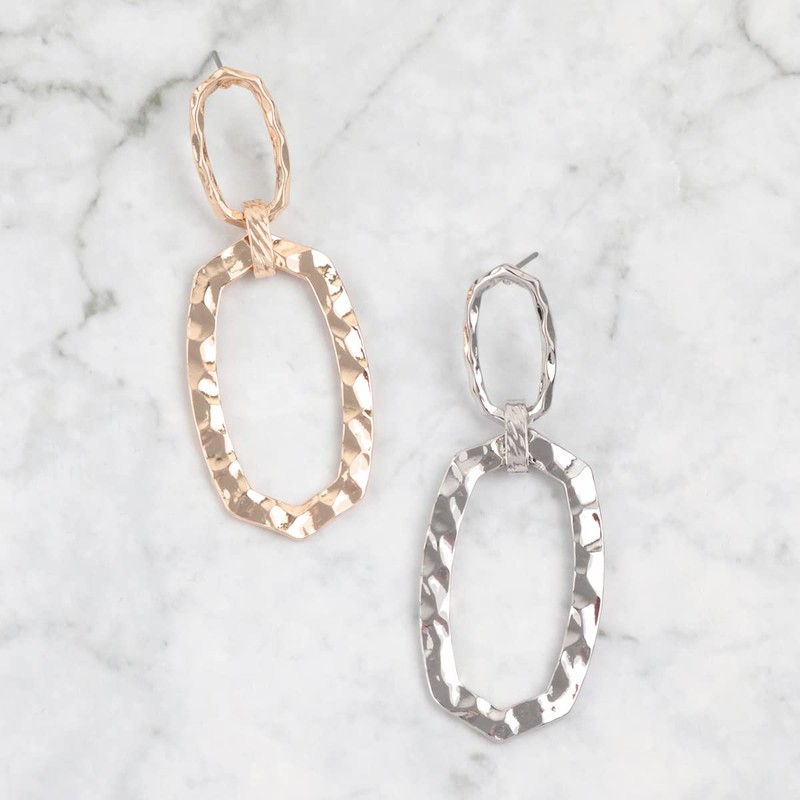RIAH FASHION Bohemian Geometric Cut-Out Drop Earrings - Simple Metallic Open Hoop Dangles Moroccan Cloud, Clover Floral Quatrefoil, Infinity Leaf, White Gold, No Gemstone