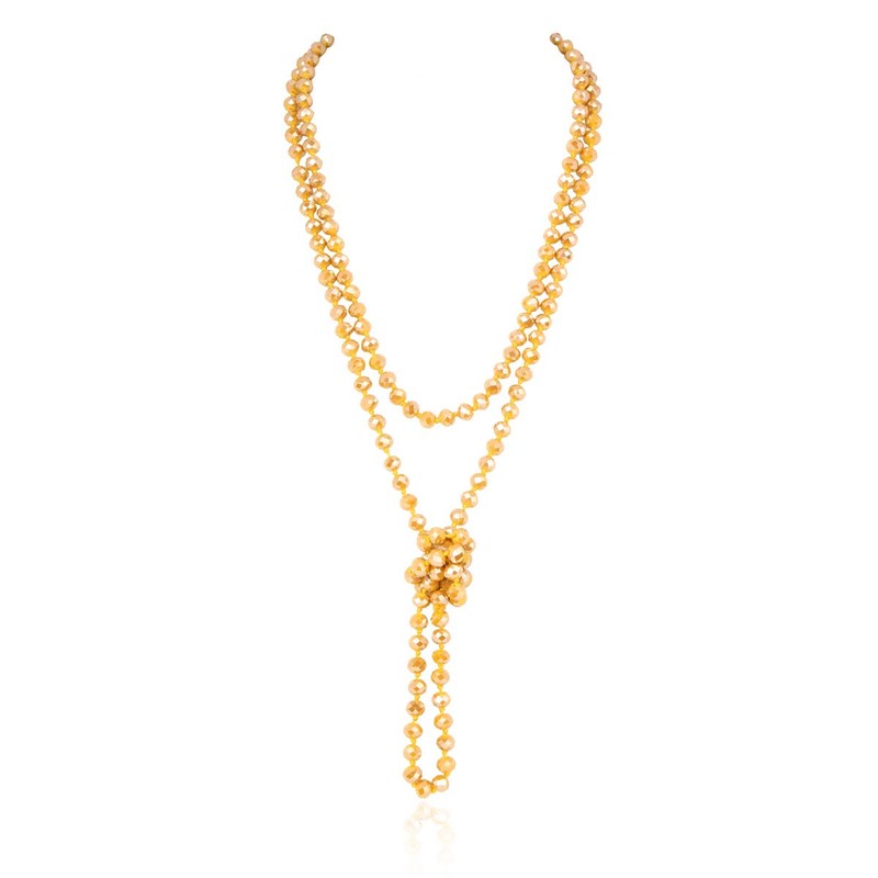 RIAH FASHION Hand Knotted Beads Endless Long Statement Necklace - Handmade Versatile Beaded Multi Layer Infinity Wrap 60" Sparkly Faceted Crystal Rondelle (Sparkly Mustard)