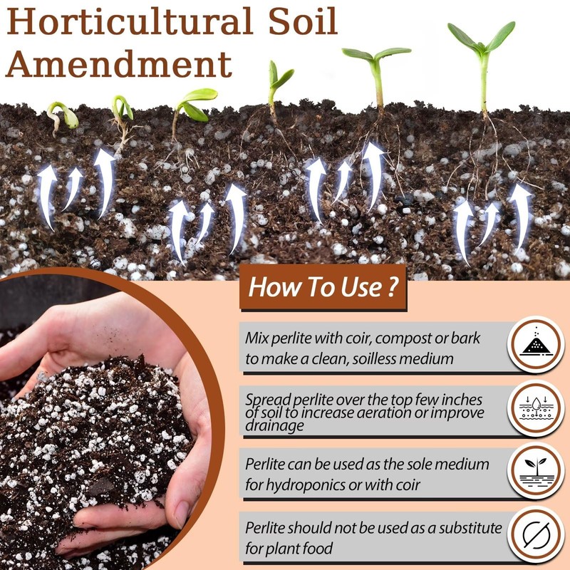 - Wide Usage: Horticultural perlite for plants can be used for seedling propagation and cuttings, soil amendments, hydroponics, rooftop gardens and so on. Great for use as soil additive for containerized plants, making plants grow healthy while looking neat and beautiful. Suitable for all kinds of tropical plants, orchids and more