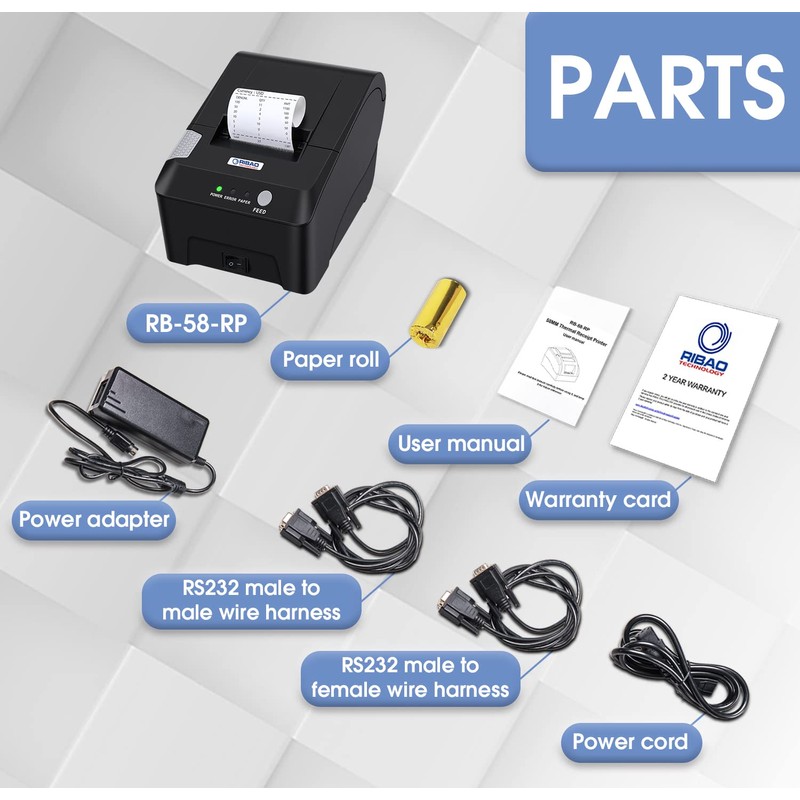 - 【Application】Default baud rate is 115200, plug and play when you connect with Ribao BCS-160/BC-55/BC-40 bill counter machine and Ribao coin sorter CS600B/CS-610S+/CS-211S, also work with other brands bill counters in the market. Easy to keep a Record of total value and quantity of count, breakdown of count by denomination and serial number of the bills. Besides, this POS receipt printer widely works in supermarkets, hospitals, restaurants, banks, gas stations, road and bridge toll collection and other fields.