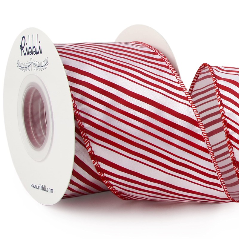 Ribbli Candy Cane Ribbon Red and White Stripe Wired Satin,2-1/2 Inch x Continuous 10 Yard,Peppermint Stripe Christmas Ribbon for Big Bow, Wreath,Tree Decoration, Outdoor Decoration
