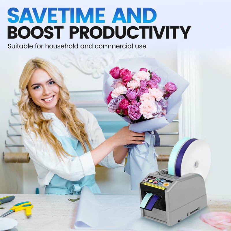 Ribbon Cutting Machine, Automatic Tape Dispenser 39.9 Inches Max Cut Length, Dual Manual and Auto Modes, Precision Cutting for Home, Business, School, Restaurant, Warehouse, Gift Wrapping