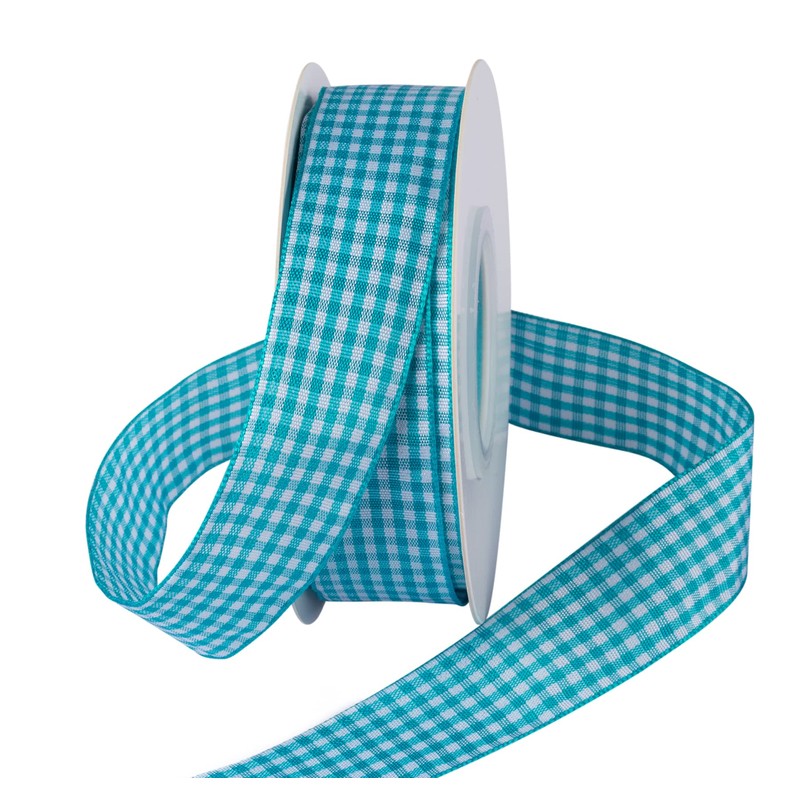 Ribbonitlux Gingham Ribbon, 1 Inch 25 Yd, Plaid Checkered Ribbon With Woven Edge, For DIY Crafts, Flower Bouquet Wrapping Home Decoration (Turquoise)